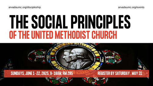 For the first four Sundays in June at 9:00 In Room 205, we will be looking at the Social Principles of The United Methodist Church: “The Social Principles speak to issues in the contemporary world from a sound biblical and theological foundation…they challenge all members of the United Methodist Church to engage in deliberative reflection and encourage intentional dialogue between faith and practice.”